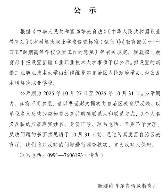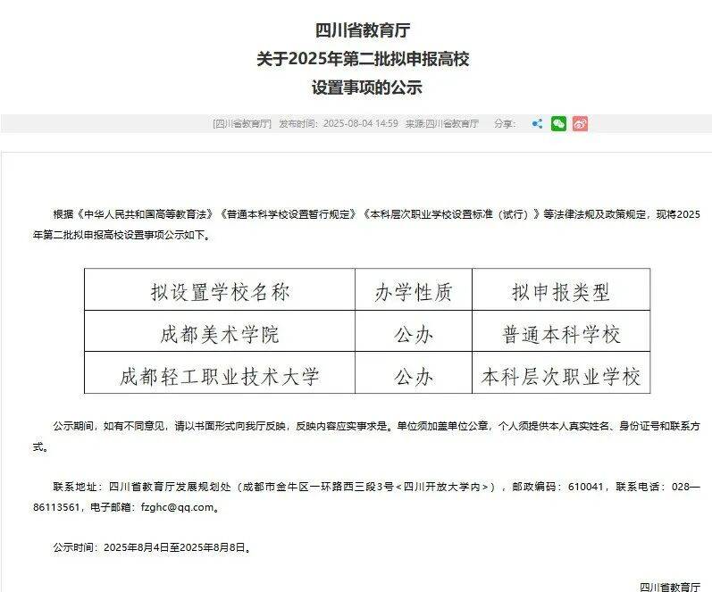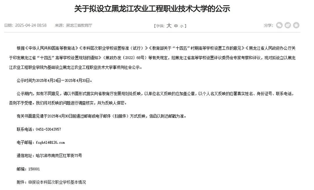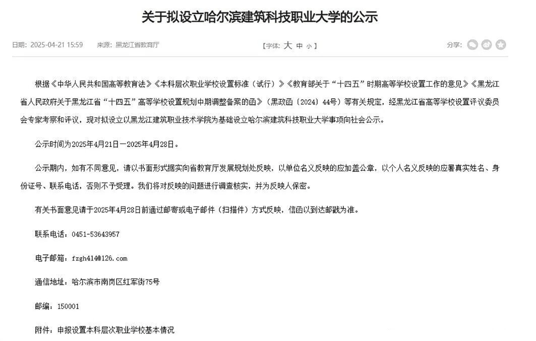 ,福建、四川、贵州、安徽、山东等多省教育部分连续公示新一批拟设本科高校,此中多所由高职院校升格而来。据不完全统计,目前全国有 学校是经福建省人平易近核准成立、教育部存案,由福州市人平易近举办的全日制通俗高档职业学校。由1958年成立的福州业余大学、1959年成立的福州工人业余大学和成立于1979年的福州电视大学组建而成,2004年1月福州贸易学校正式并入学校。2019年12月,被教育部、财务部列入第三类高程度专业群扶植单元(B档)。截至2018年10月,学校坐落于福州市大学城,面积1122。08亩(此中水域面积约180亩,预留地400亩),建建总面积约19。14万平方米;设有9个二级学院,招生专业36个;有教职工500多人,全日制高职正在校生9000多人,各类学历正在校生9400多人。 成都纺织高档专科学校是四川省举办的公办全日制高档职业院校,前身为1939年开办的国登时方身手专科学校,是西南地域独一建制的纺织类高职院校。学校职业教育类型定位,办事轻工纺织财产特色,是国度示范()高职院校、国度优良专科高档职业院校、中国特色高程度专业群扶植单元、中华优良保守文化传承、中国非物质文化遗产传承人群培训打算施行院校、中国纺织服拆高技强人才培训,四川省“双高打算”学校(A档)、四川省本科条理职业教育人才培育试点院校。2025年11月17日,贵州省教育厅发布《关于拟申报设置相关高档学校的公示》,此中,拟以贵州工业职业手艺学院为根本设立贵州工业职业手艺大学。 学校位于贵州省贵阳市,是经教育部核准和存案的公办通俗高档职业手艺学院,为贵州省高程度高职学校和专业扶植想划扶植单元、贵州省“三全育人”试点单元。学校前身是建立于1958年的贵州省化工学校;2002年3月经省核准升格为建制的高职学院,名称为“贵州科技工程职业学院”;2009年2月1日,改名为贵州工业职业手艺学院;2009年,学校被省教育厅确定为“省级示范高职学院扶植单元”;2021年,学校获批为贵州省高程度高职学校和专业扶植想划扶植单元。2025年7月7日,云南省教育厅发布一则公示,现对整合云南交通职业手艺学院、云南交通运输职业学院资本设置本科条理职业学校事项向社会公示。 简称云交院,位于云南省昆明市呈贡大学城,是云南省首家国度示范性高档职业院校、国度优良专科高档职业院校、国度扶植类技术型紧缺人才培育试点高校、国度汽车使用取维修类技术型紧缺人才培育、云南省高程度高职院校项目院校、云南省优良高职扶植院校、云南省零丁招生院校之一,为交通大盟、中国-南非职业教育合做联盟、金砖国度职业教育联盟高校,简称云交运院,坐落于云南省昆明市平和平静市,是云南省人平易近核准设立、中华人平易近国教育部存案的公办全日制专科条理高档职业学校,实行一套班子两块牌子、两个机构相对运转、共享讲授及保障资本的运转机制。学校本部位于滇中国度级新区平和平静市,设有白鱼口、穿金等多个校区,占地面积1489。76亩,建建面积32万平方米;设有13个二级学院,开设42个高职专业;有教职工733人,此中兼任教师472人,正在校生规模1。5万余人。2025年7月25日,天津市教育委员会发布“关于我市相关高校设置工做的公示”,对拟向教育部申报的以天津市职业大学为根本设立本科条理职业学校天津职业大学进行公示。 天津职业大学始建于1978年,是全国最早举办高档职业教育的院校之一,为首批“国度示范性高档职业院校”和全国优良高职高专院校,2019年入选“双高打算”高程度院校A档扶植单元。2025年11月12日,河南省教育厅发布关于拟申报本科学校的公示。拟按法式申报以河南农业职业学院为根本设立河南农业职业手艺大学。 河南农业职业学院是一所公办全日制高档院校,建立于1952年,前身为河南省郑州农林中等手艺学校,历经河南省中牟农业学校、河南省农业学校等成长阶段,2004年升格为高档职业院校。学校原附属于河南省农业农村厅,2019年12月,被教育部、财务部列入第三类高程度专业群扶植单元(B档),2022年转隶至河南省教育厅办理。 2023年9月12日,河南省教育厅和河南省农业农村厅决定对河南农业职业学院实行厅际共建。2025年10月27日,新疆维吾尔自治区教育厅发布公示,拟向教育部申报设置新疆工业职业手艺大学事项予以公示。拟设置的新疆工业职业手艺大学由新疆维吾尔自治区人平易近举办,为公办本科条理职业学校,通过整合新疆轻工职业手艺学院、新疆工业职业手艺学院、新疆安拆工程学校三所院校资本组建。 新疆轻工职业手艺学院始建于1958年,2000年经自治区人平易近核准升格为新疆首批高档职业院校。2023年,学校取新疆工业职业手艺学院归并沉组,现已成为自治区工业范畴专业门类最齐备的公办高职院校。2025年,经新疆维吾尔自治区党委机构编制委员会办公室批复,学校正式升格为副厅级事业单元。新疆工业职业手艺学院位于新疆维吾尔自治区乌鲁木齐市,是由新疆维吾尔自治区人平易近举办,中华人平易近国教育部存案,新疆维吾尔自治区从管的公办全日制通俗高职院校。学校是国度级“一生进修品牌项目学校”、“急救教育试点学校”、国度高技强人才实训、第二批1+X证书轨制试点院校。2025年8月18日,新疆维吾尔自治区教育厅发布公示,拟向教育部申报设置新疆能源铁道职业手艺大学事项予以公示。拟设置